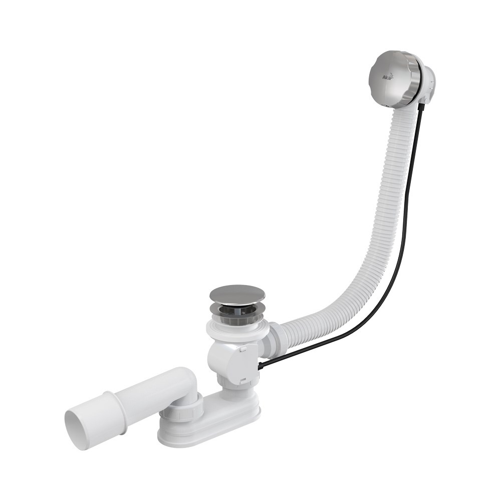 Слив-перелив полуавтомат для ванны 40/50 x 570 мм, пробка слива 70 мм, металл, хром