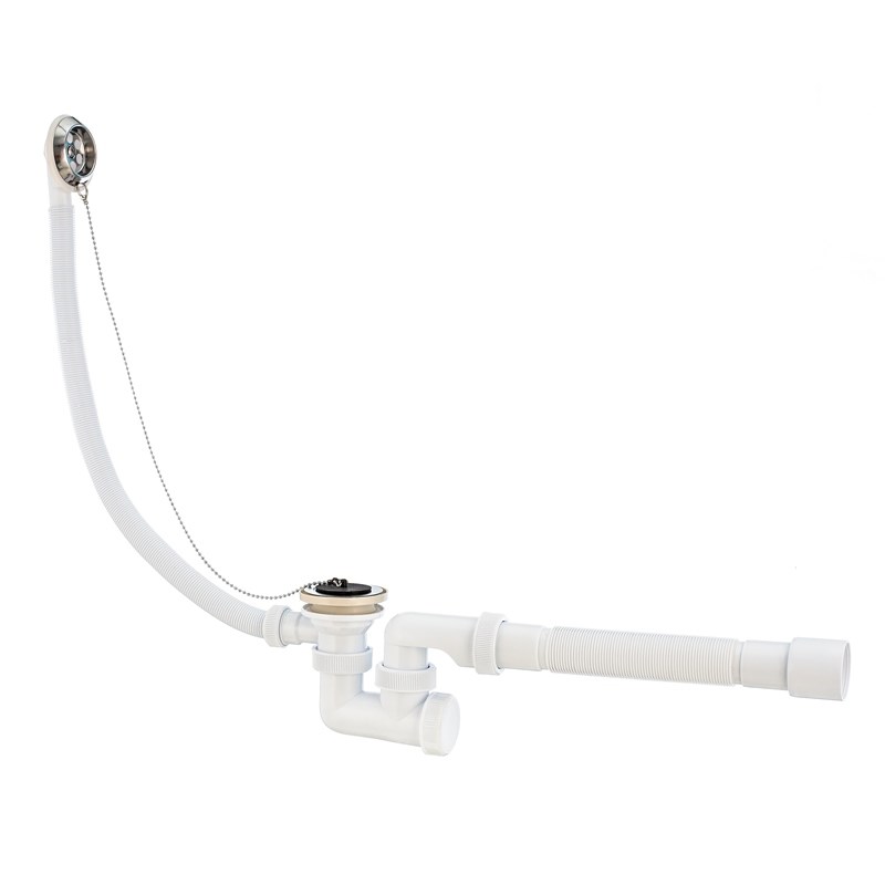 Слив-перелив Универсал 1 1/2 х 40 мм, нерж. сталь, L500 мм 40 х 40/50 мм, с пробкой на цепочке