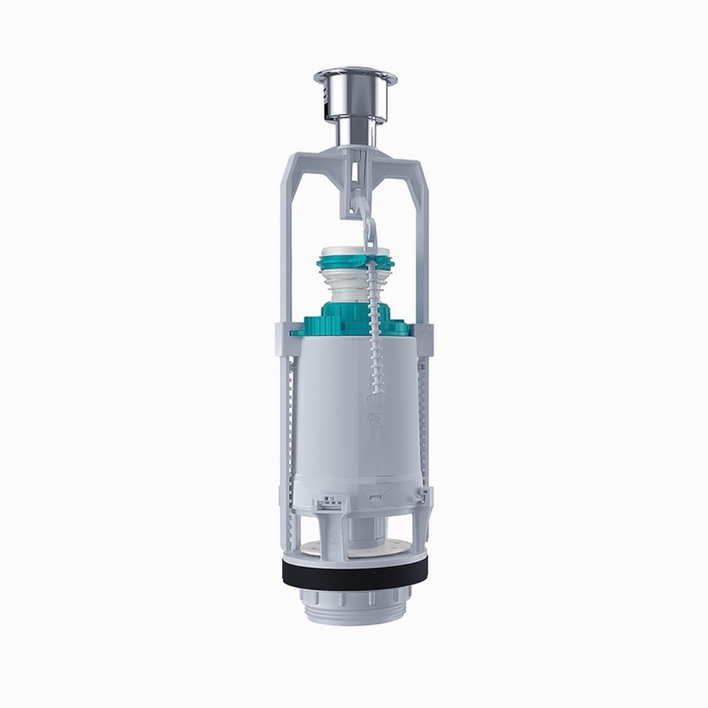 Выпускной двухуровневый клапан с хромированной кнопкой предназначен для комплектации водосливной арматуры в сливном бачке.