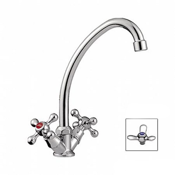Смеситель для кухни 1/2 кер L4012 Ledeme КРЕСТ 3-х лепес, силумин