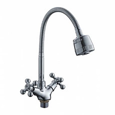 Смеситель для кухни 1/2 кер L4319-3 Ledeme КРЕСТ гибкий излив, гайка, силумин