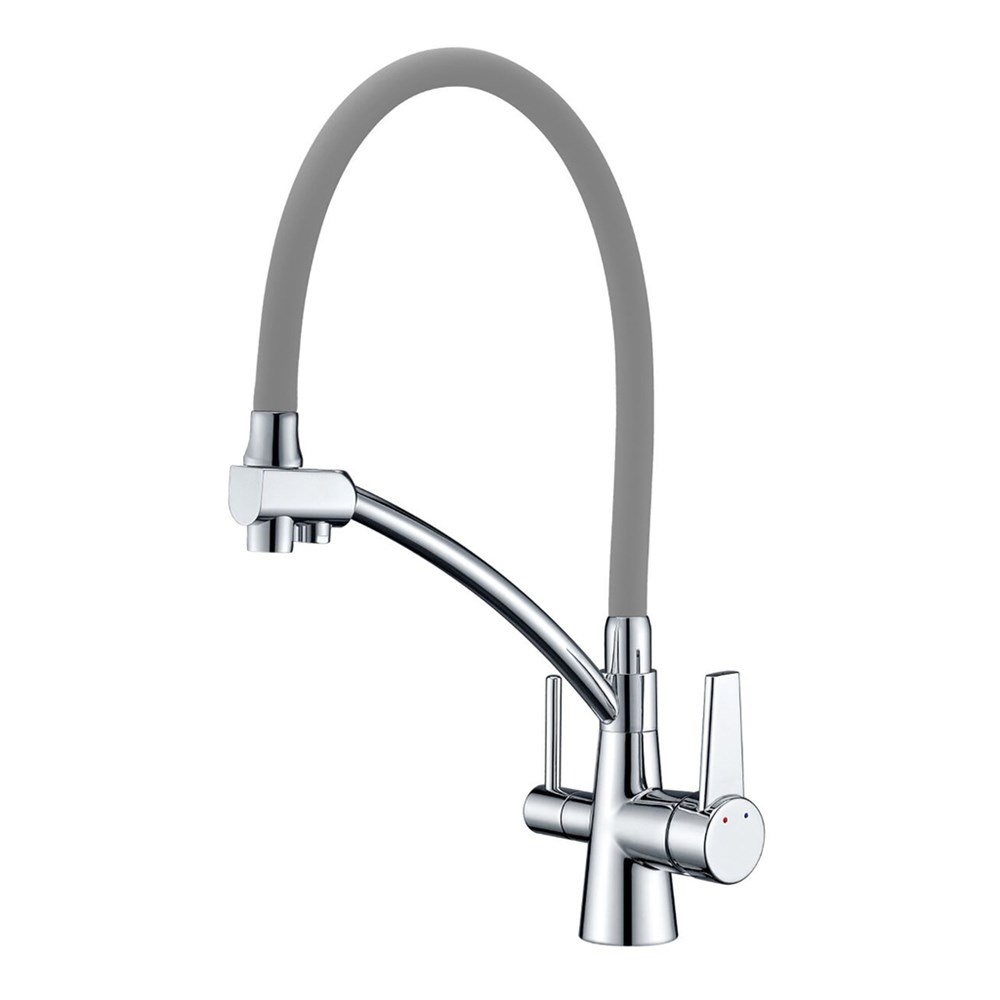 Смеситель для кухни 35к G4398-17 GAPPO гибкий излив, с вых. для пит. фильтра, п/шпильку, СЕРЫЙ-хром
