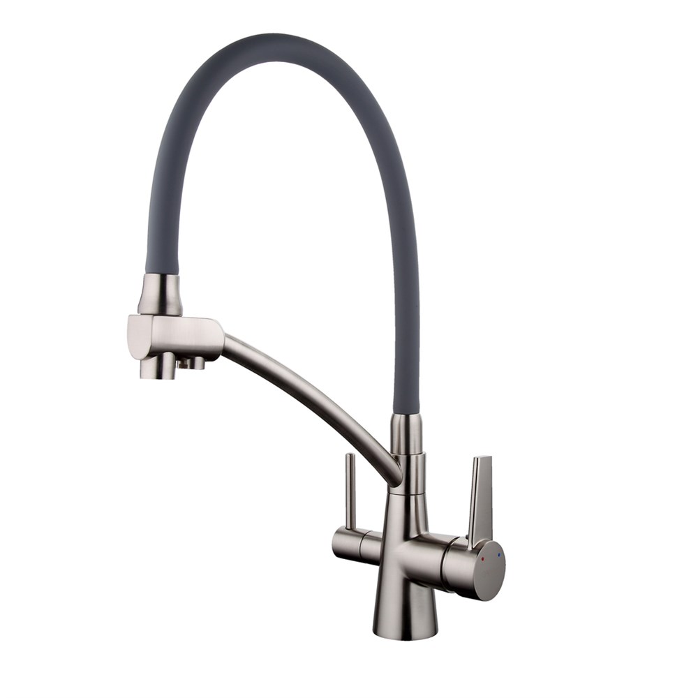 Смеситель для кухни 35к G4398 GAPPO гибкий излив, с вых. для питьевого фильтра, СЕРЫЙ-сатин
