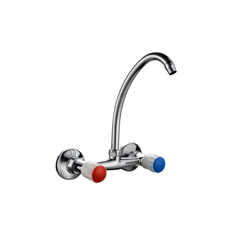 Смеситель для кухни настенный 1/2 кер Казань КС-90 90011 верх излив бел пласт маховики ЕВРО