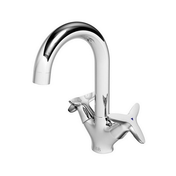 Смеситель для кумывальника Copter привлекает внимание оригинальным, стильным исполнением ручек, плавными линиями и зеркальным блеском.