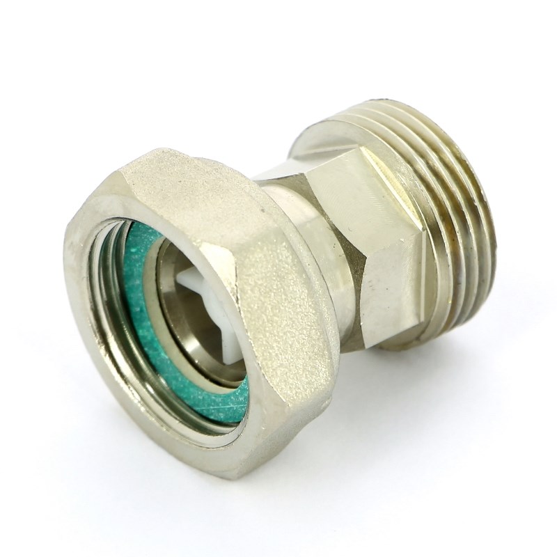 Соединение с накидной гайкой НВ 3/4" с плоской прокладкой и обратным клапаном никелир