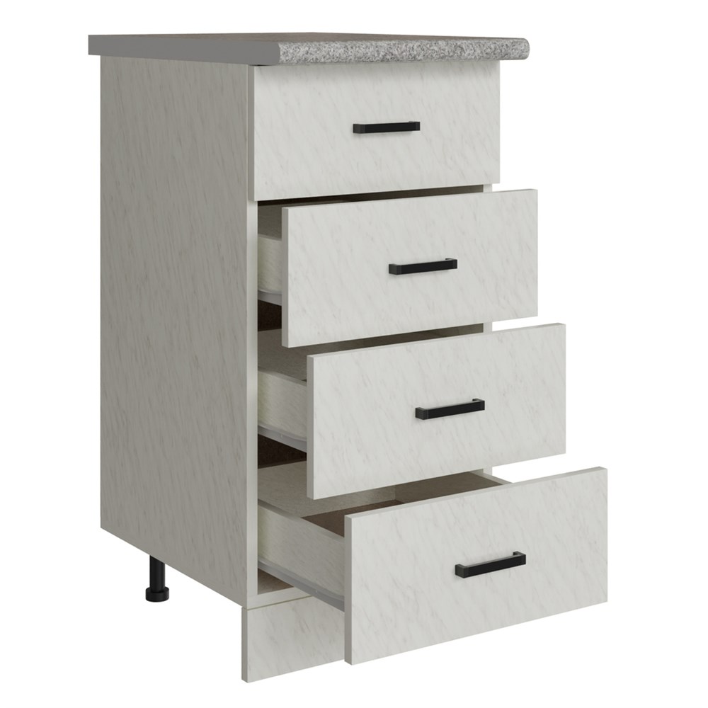 Стол разделочный 40 белый мрамор (4 ящика), столешница гранит пёстрый