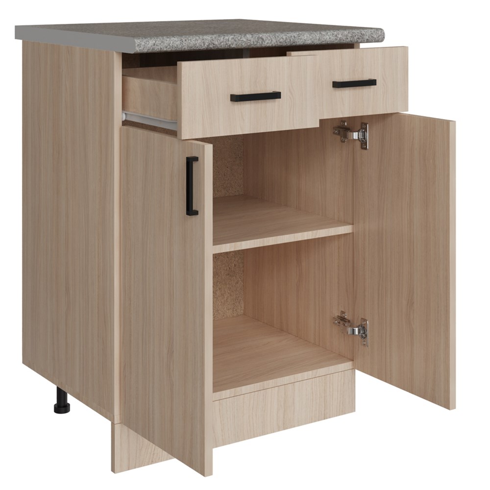 Стол разделочный 60 венге светлое (дуб млечный) (2 ящика), столешница гранит пёстрый
