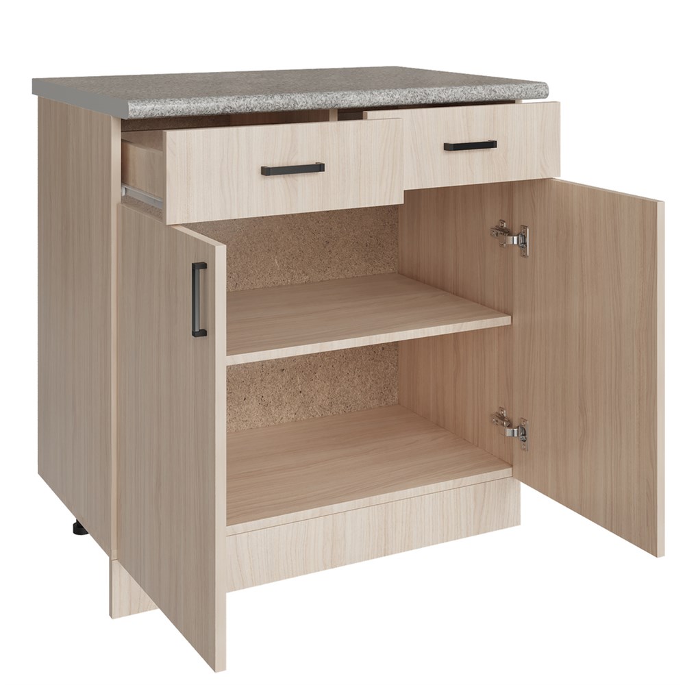 Стол разделочный 80 венге светлое (дуб млечный) (2 ящика), столешница гранит пёстрый
