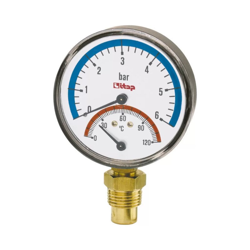 Термоманометр (0-4 бар, 0-120°С) 80 мм, торцевое присоединение НР 1/2"