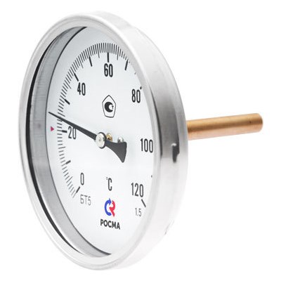 Термометр 100х1/2 160С БТ-51 шток 64мм (осевое аксиальное подкл.,корпус сталь) РОСМА