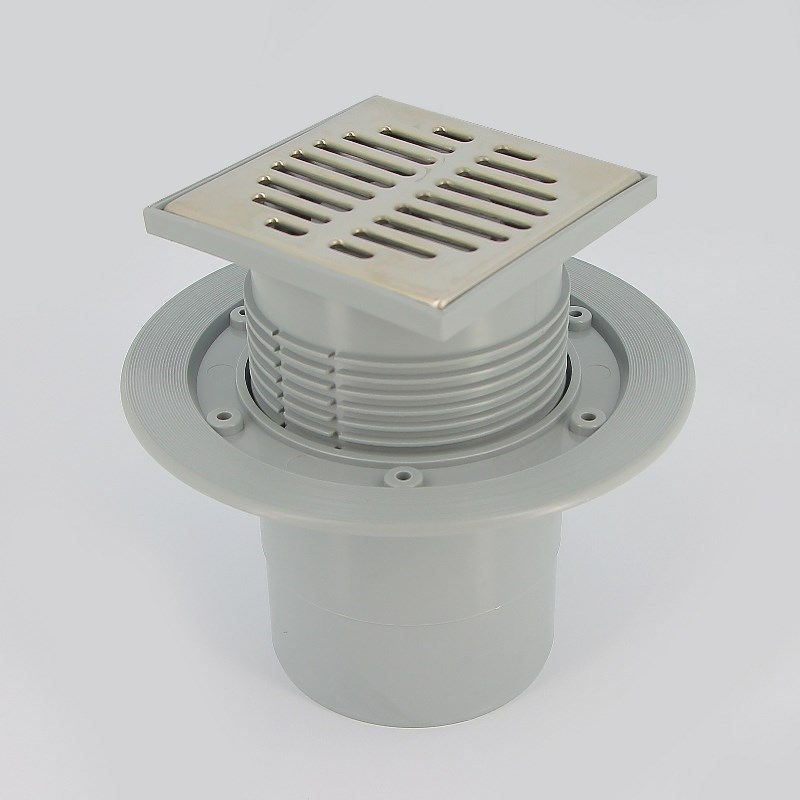 Трап 115 х 115 мм, "сухой" затвор H=87-145 мм, выход 110 мм вертикальный, нерж.сталь