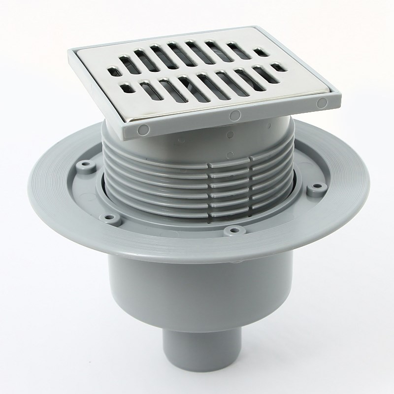 Трап 115 х 115 мм, "сухой" затвор H=87-145 мм, выход 50 мм вертикальный