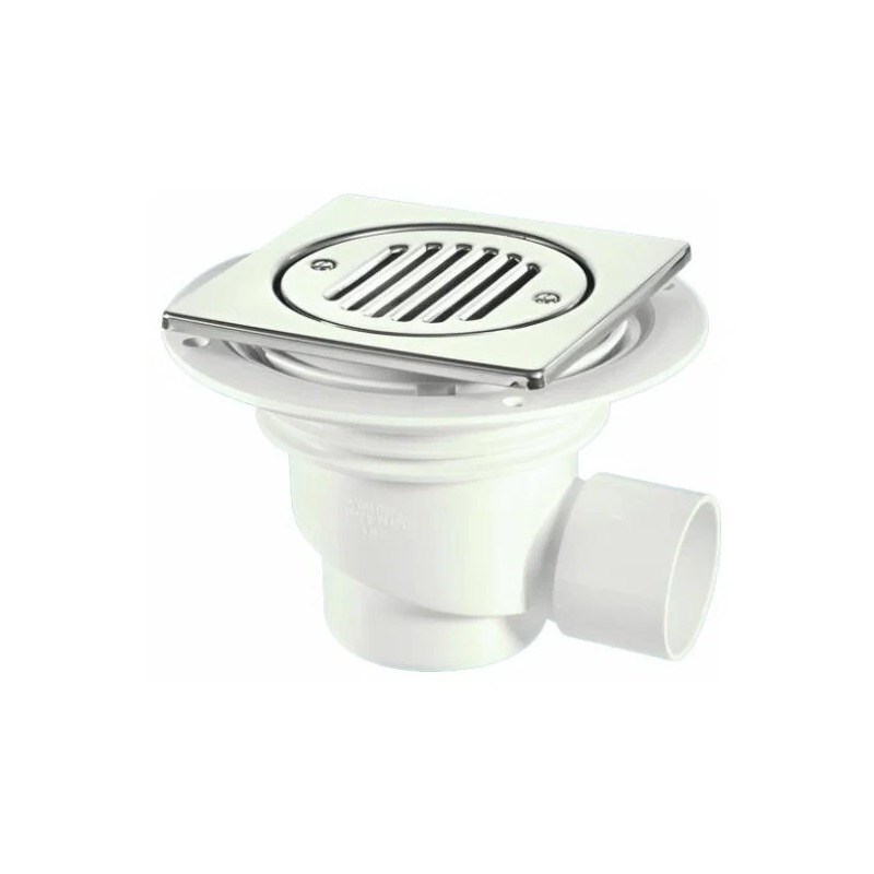 Трап (H130мм, L148ммх148мм полированная нержавейка сливная насадка ); выход Дн=50мм; цвет-хром