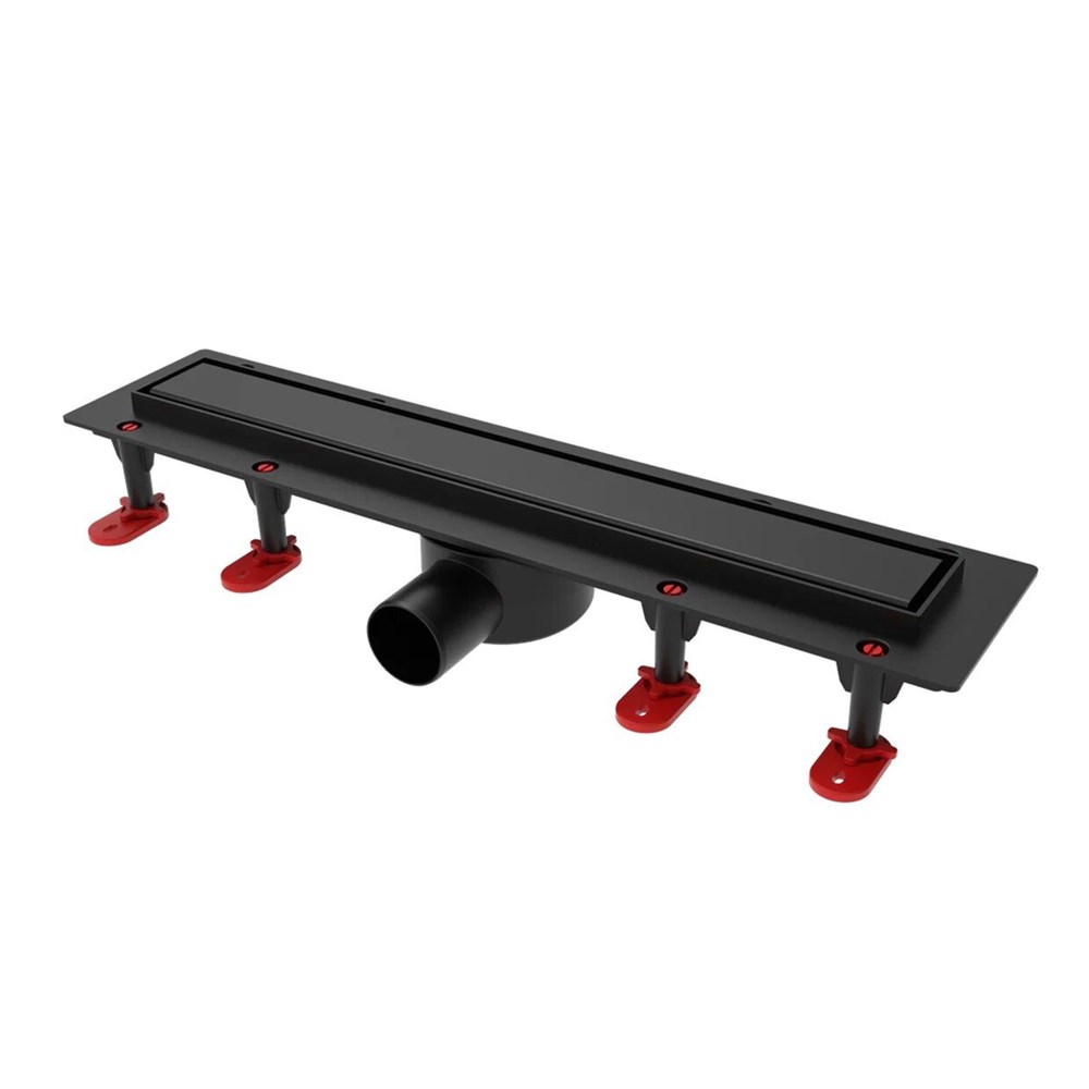 Трап линейный ТП-55C-600 решетка из нерж. стали с гориз. выходом D50 мм, рамка из пластика ЧЕРНЫЙ