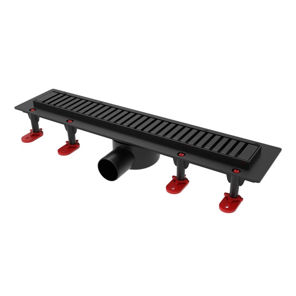 Трап линейный ТП-55D-700 решетка из нерж. стали "Полосы"с гориз. вых.D50 мм рамка из пластика ЧЕРНЫЙ