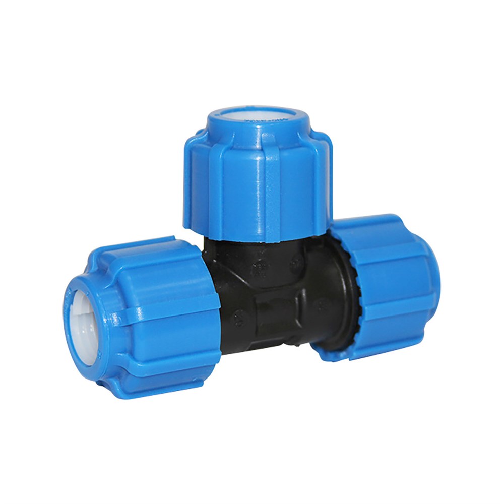 Тройник равнопроходной компрессионный является деталью трубопроводной системы из ПНД труб для технического или питьевого водоснабжения, широко используется в системах полива. Назначение тройника равнопроходного - устройство разветвления равного диаметра в пластиковых трубопроводах.