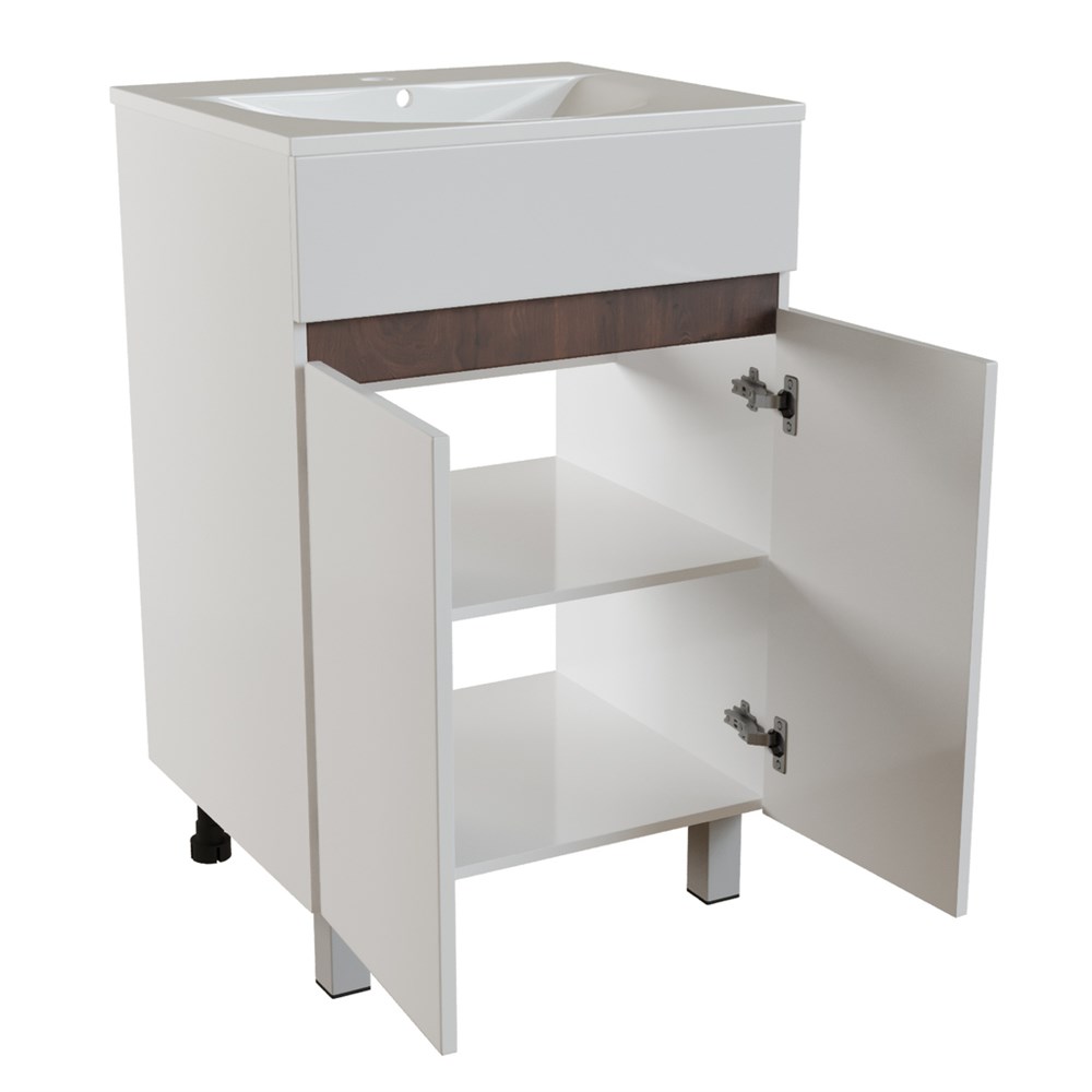 Тумба д/ванной "БРИКС-50" 2 ст.белый/дуб вотан под рак."Breeze 50"меб. (Sanita Luxe)(ПВХ) (разбор)