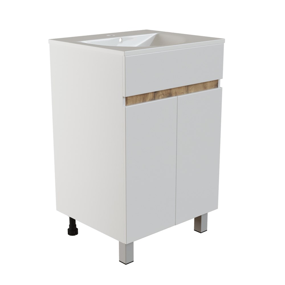Тумба д/ванной "БРИКС-50" 2 створки белый/дуб вотан под рак."Breeze 50" мебельный (Sanita Luxe)(ПВХ)