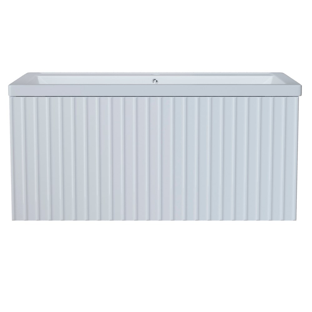 Рельефный фасад тумб добавит объемные текстуры в интерьер ванной комнаты.