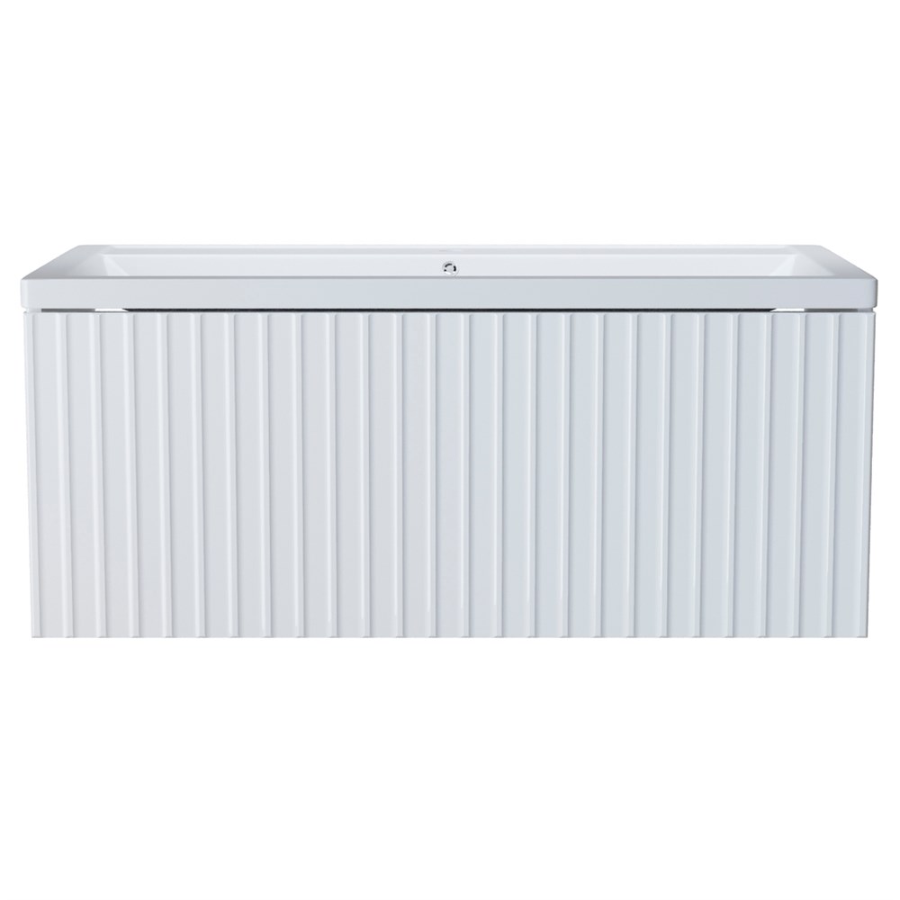 Рельефный фасад тумб добавит объемные текстуры в интерьер ванной комнаты.
