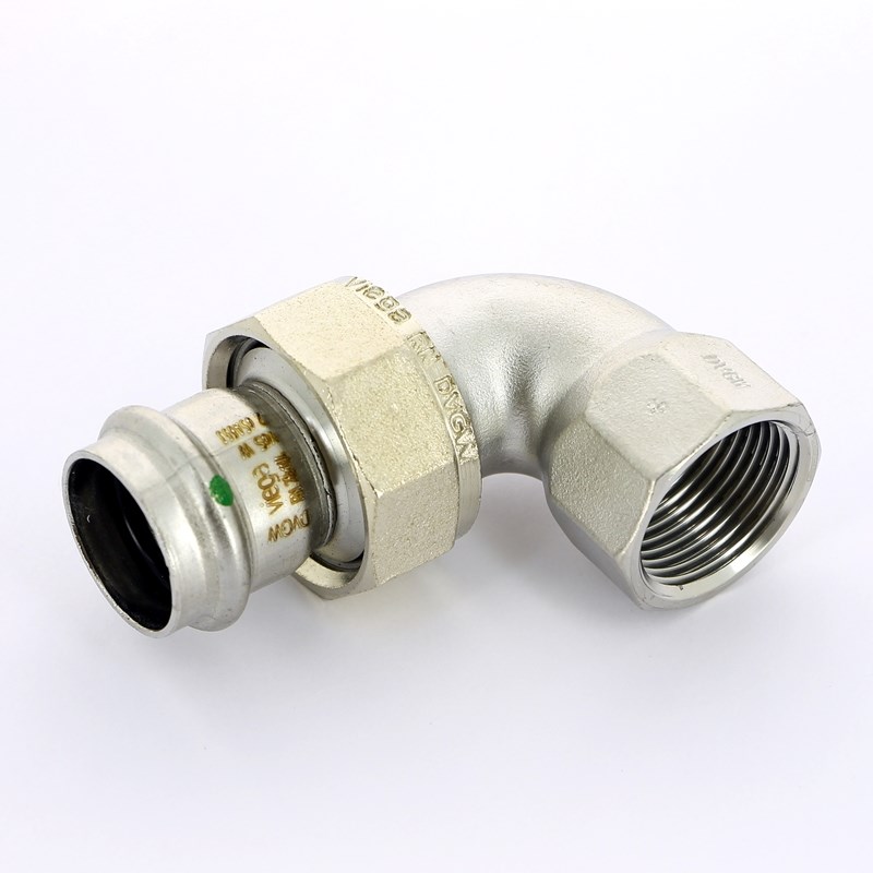 Угол пресс-B 28x1' с разъемным соединением и плоск. прокладкой, нерж.сталь Sanpress Inox SC-Contur