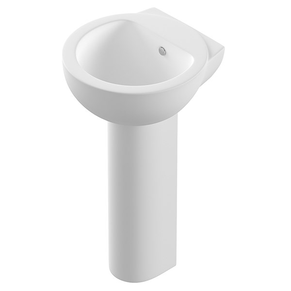 Природная геометрия и округлые формы делают пьедестальный умывальник универсальной моделью по дизайну.
