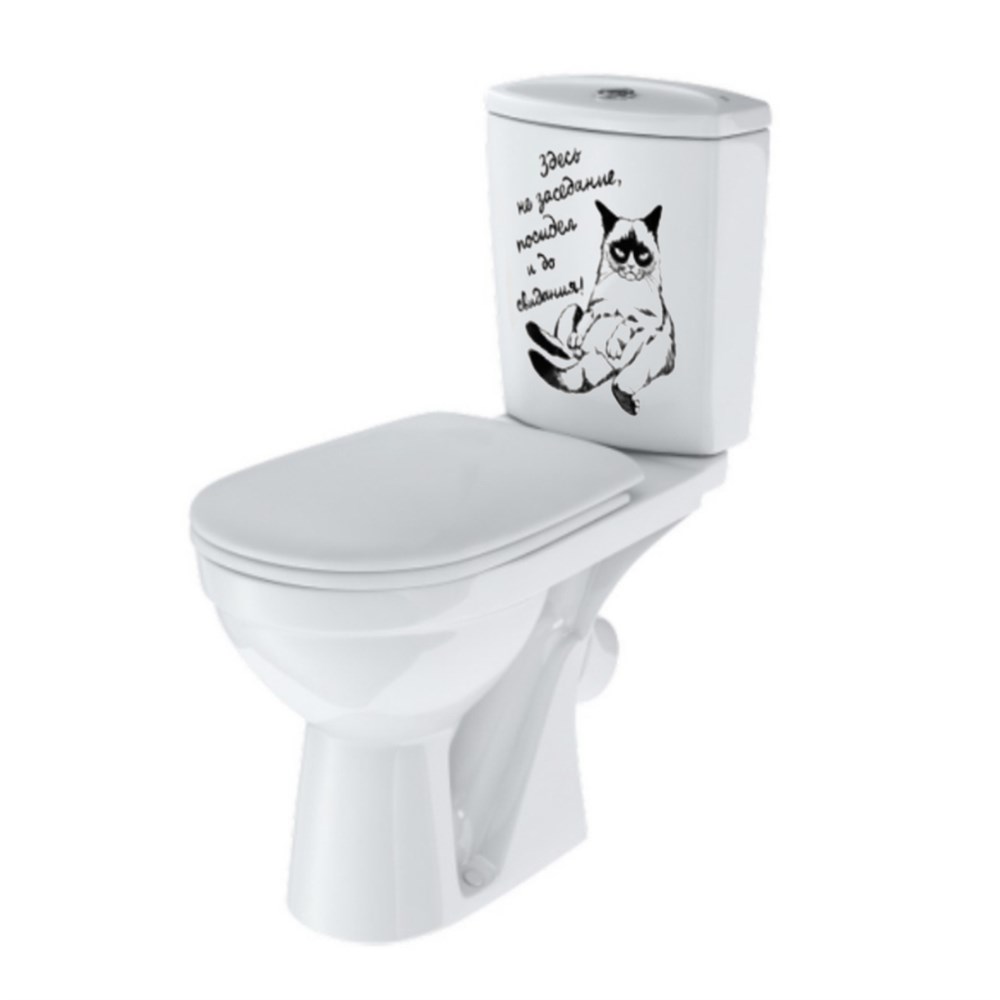 Унитаз-компакт "Комфорт" Декор "Кот на заседании" (кос,ниж,сид. полип.,2-кн.арм) (Rosa)