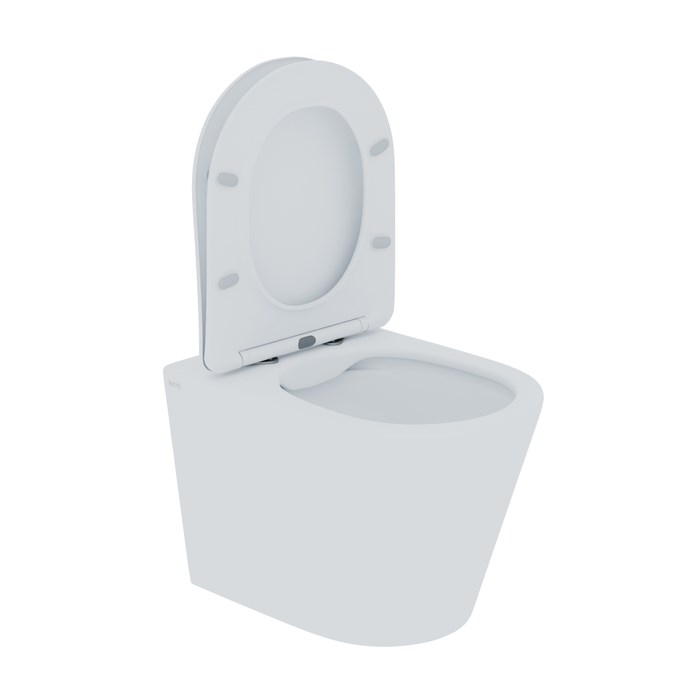 Унитаз подвесной безободковый Calipso имеет округлую форму чаши, тонкое сиденье с функциями SoftClose и EasyFix.
