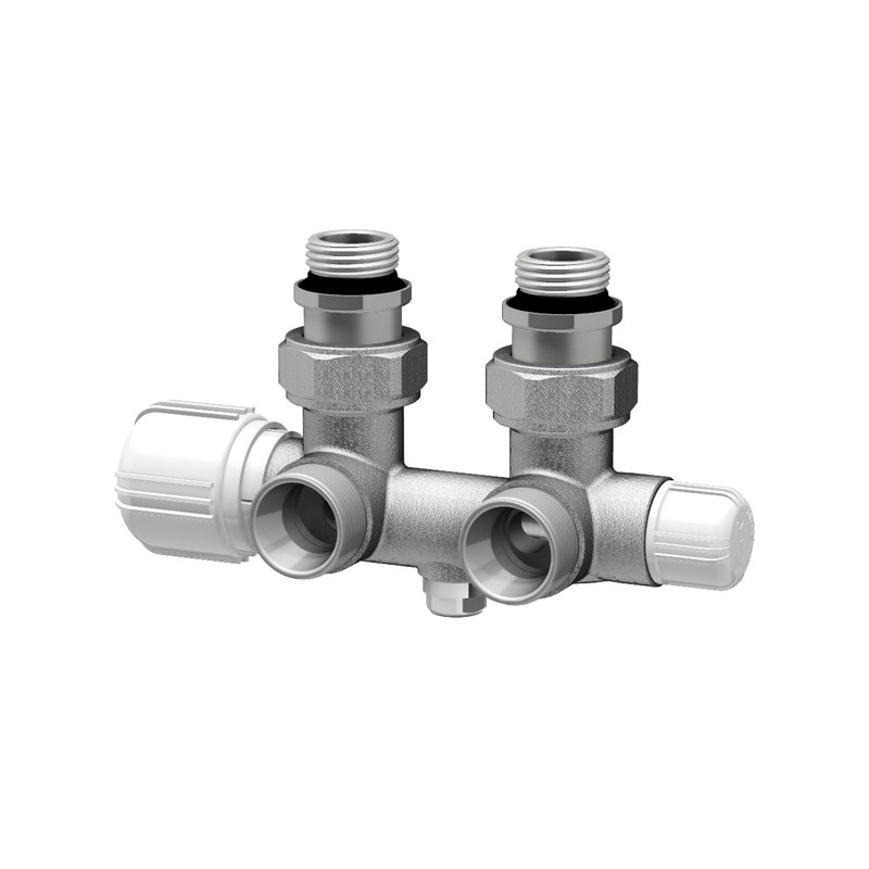 Узел Н-образный угловой НР М24х19 - 1/2"НР с термостатическим и запорным клапанами