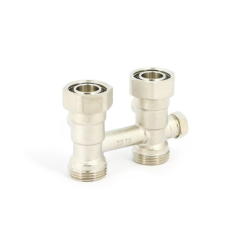 Узел угловой перекрёстный НВ 3/4"ЕК х 3/4"ЕК радиаторный со встроенными вентилями