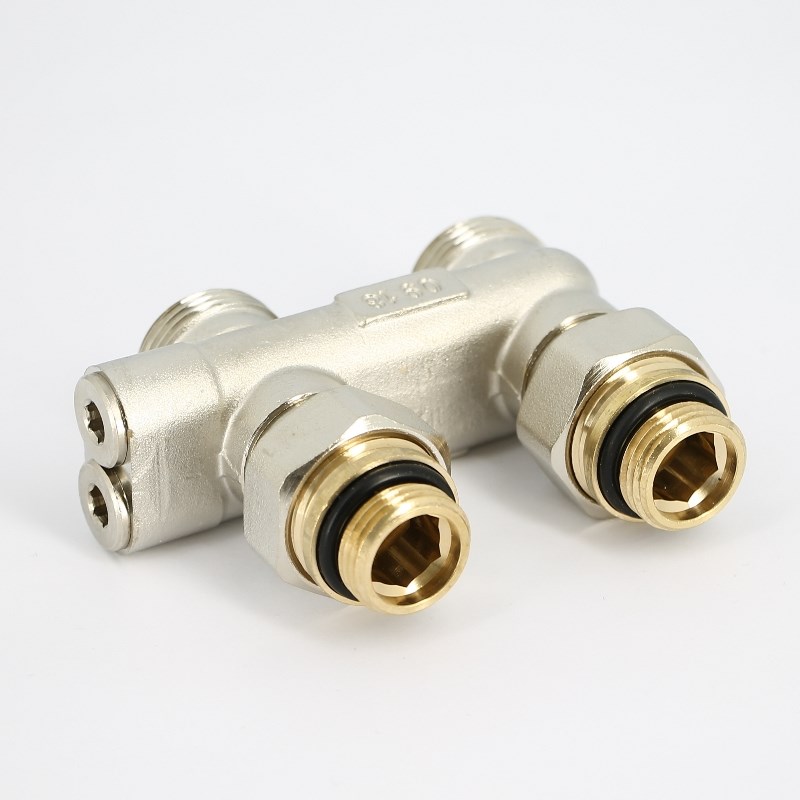 Узел прямой перекрёстный НВ 3/4" х 3/4"ЕК радиаторный со встроенными вентилями, с ниппелями и адапт