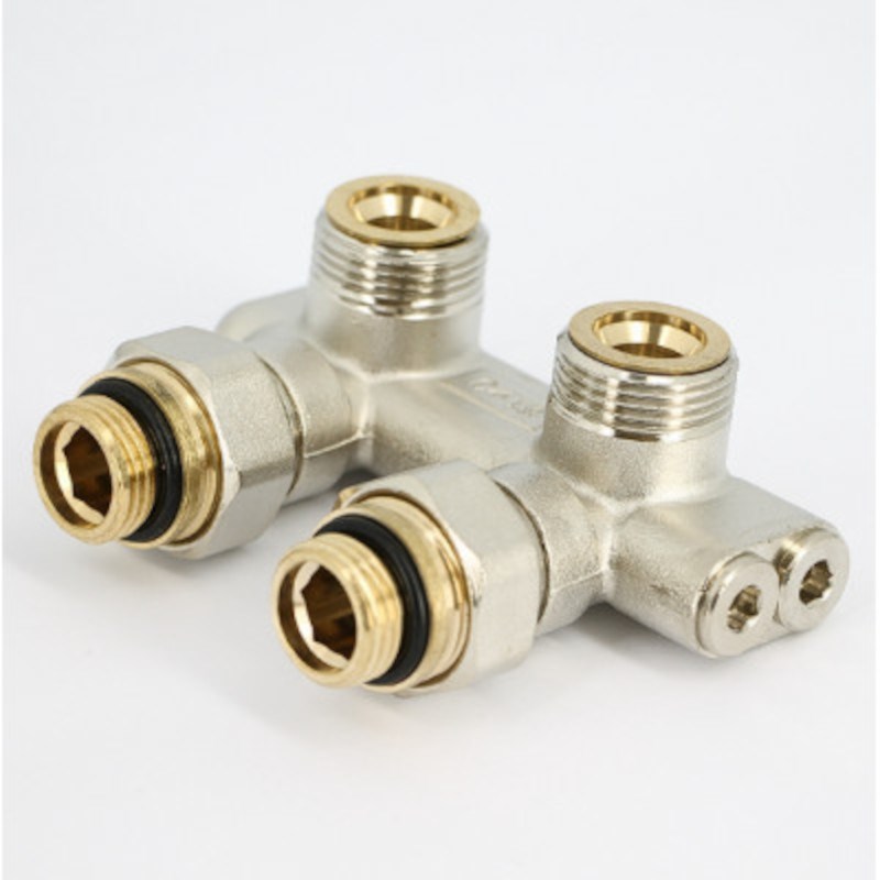 Узел угловой перекрёстный НВ 3/4"ЕК х 3/4"ЕК радиаторный со встроенными вентилями