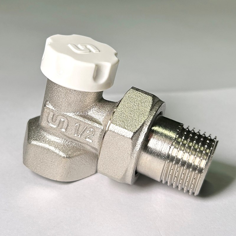 Вентиль термостатический угловой НВ 1/2" с разъёмным соединением, никелированный