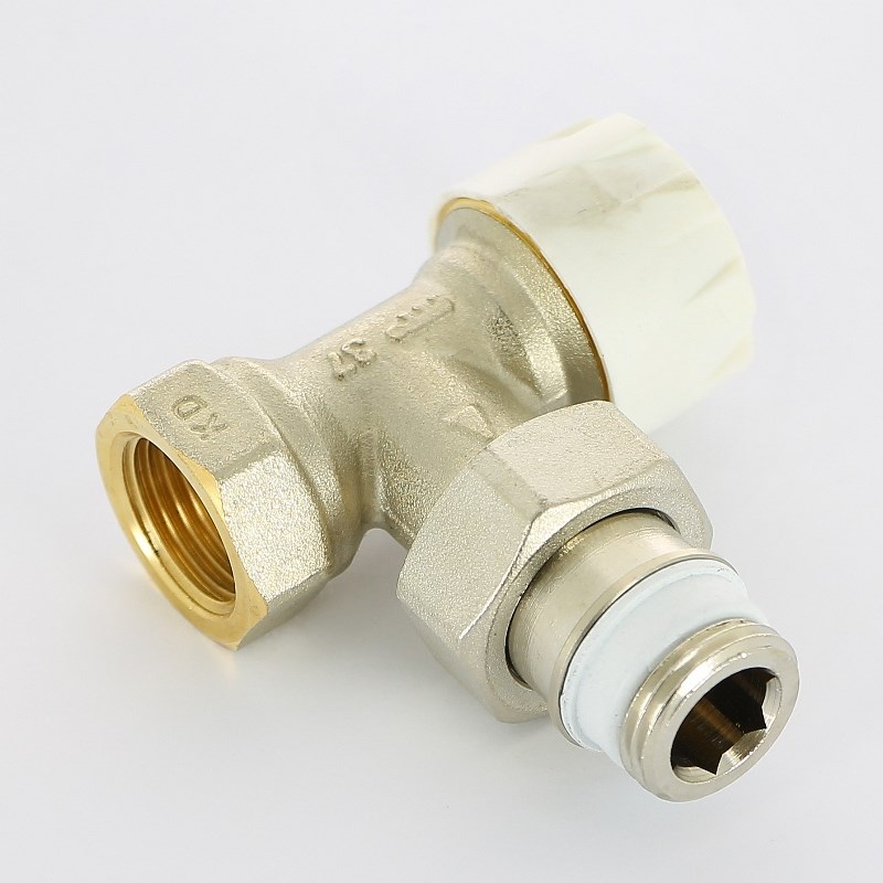 Вентиль термостатический угловой НВ 1/2" с преднастройкой, никель, с разъем. соединением