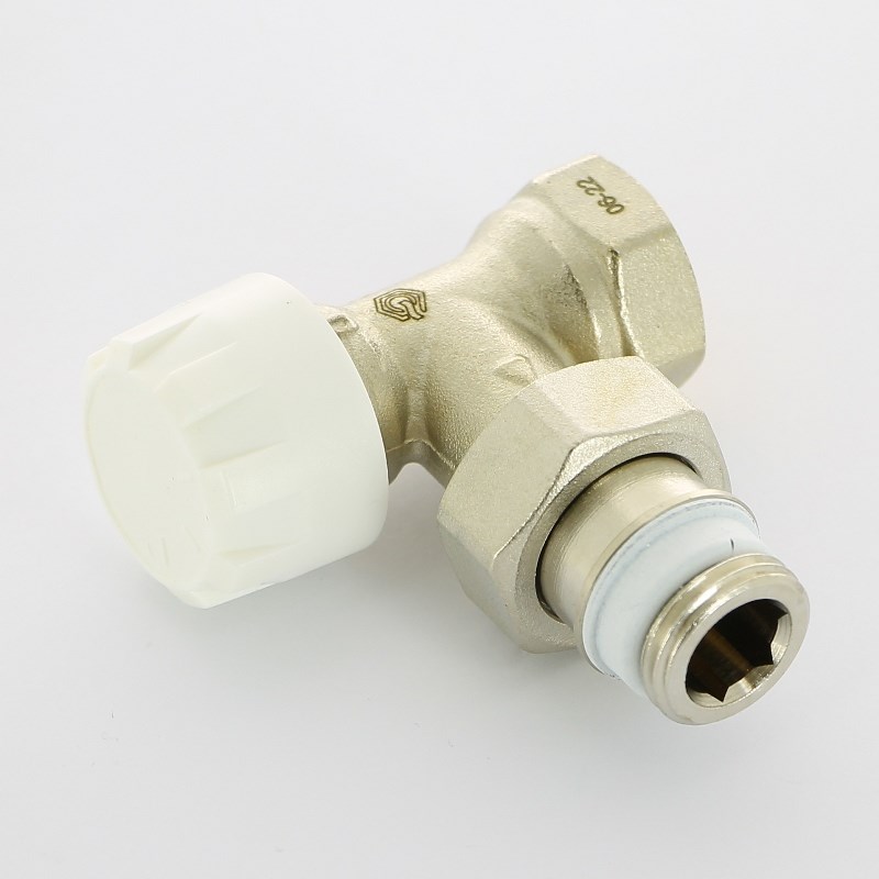 Вентиль термостатический угловой НВ 3/4" с преднастройкой, никель, с разъем. соединением