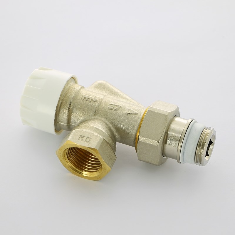Вентиль термостатический угловой-осевой НВ 1/2" с преднастройкой, никель, с разъем. соединением