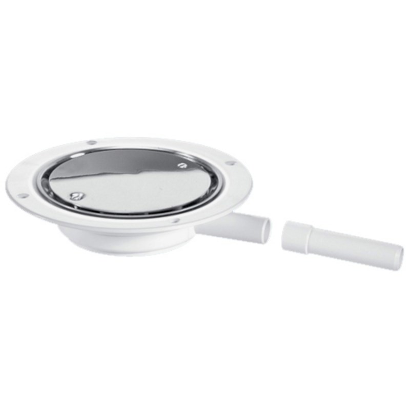 Водосток напольный (H45мм, D129/120мм хромированная нержавейка выпуск/сливная решётка) без гидрозатв
