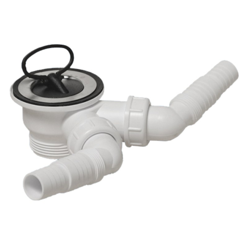 Выпуск (H51мм, D85мм нержавейка сливная решётка) с пробкой и 2-мя адаптерами под углом для слива быт