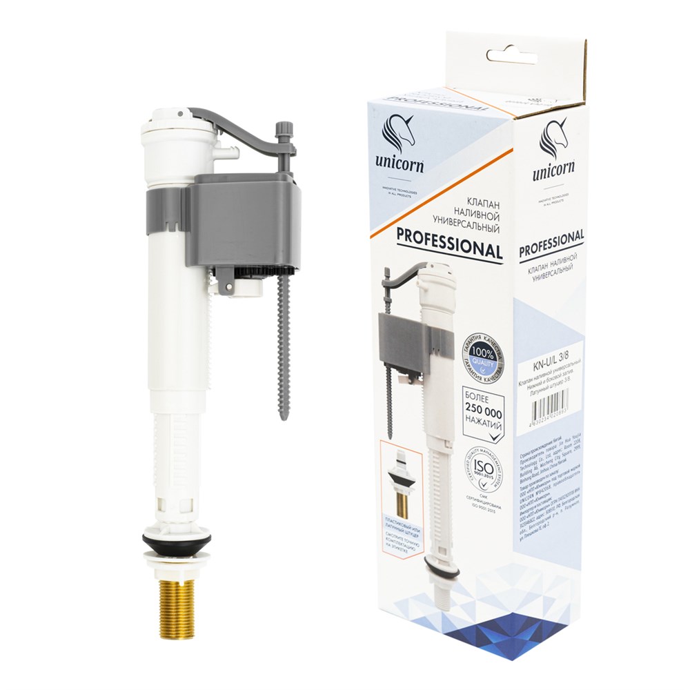 Заливной клапан UNICORN универсальный (бок/ниж. подвод, лат. штуцер 3/8") KN_U/L_3/8