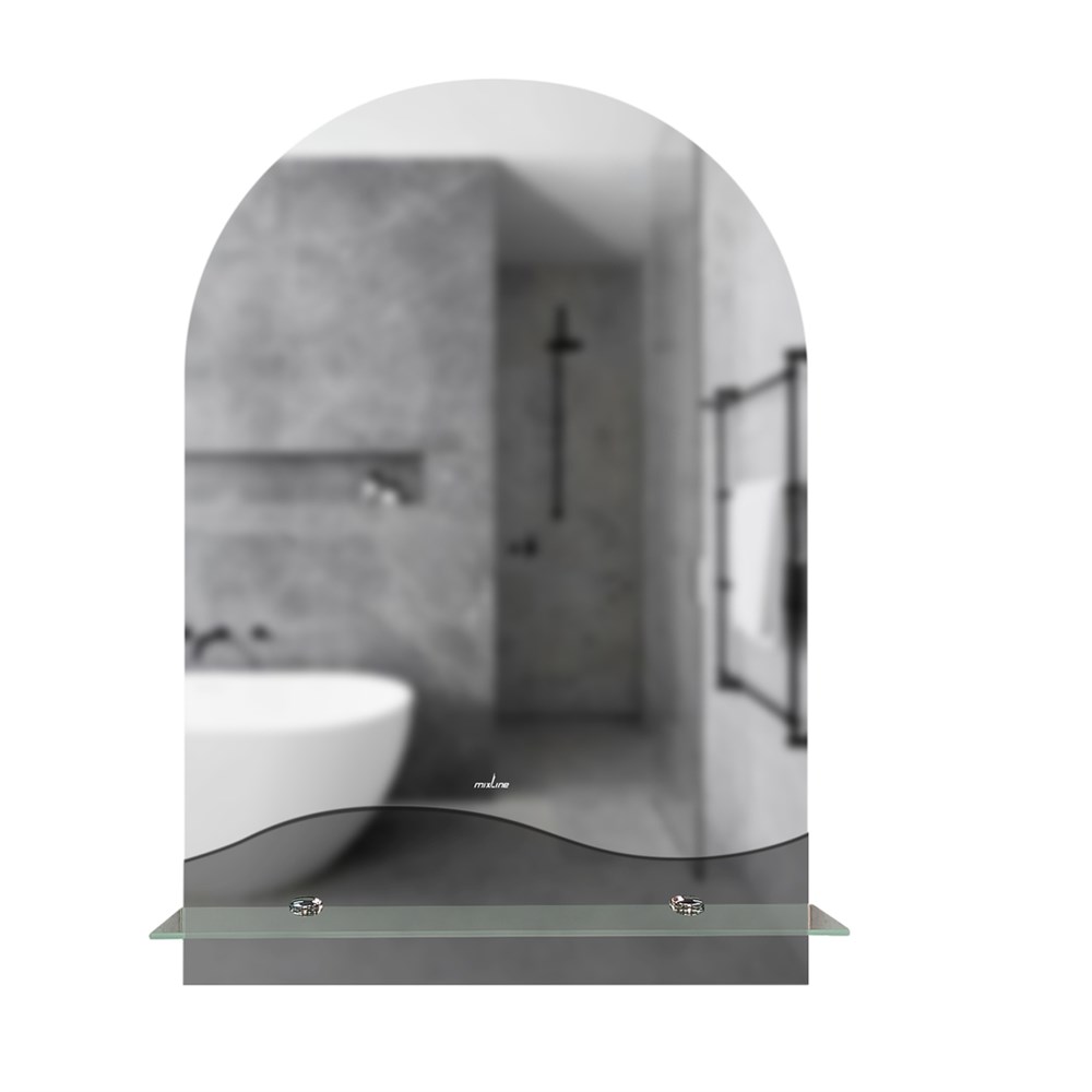 Зеркало "Амели" в форме арки отлично впишется в интерьер ванной комнаты современного стиля. На вместительной стеклянной полке удобно разместить гигиенические средства и мелкие аксессуары.